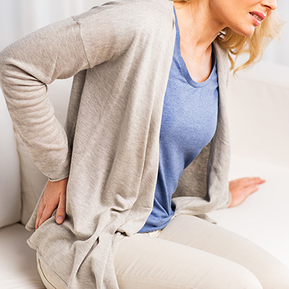 - Pain and stiffness. Constant pain and stiffness in the low back, buttocks, and hips that continue for more than three months. Spondylitis often starts around the sacroiliac joints, where the sacrum (the lowest major part of the spine) joins the ilium bone of the pelvis in the lower back region.